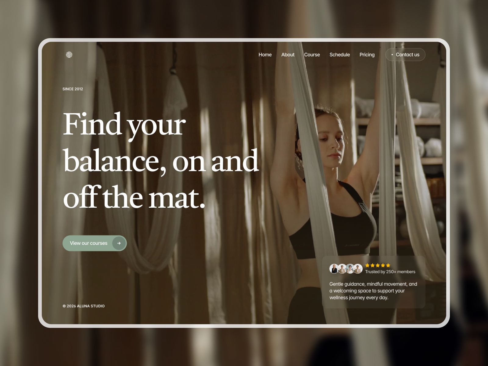 Aluna is a clean, light studio template built for wellness brands. Perfect for launching wellness-related services smoothly.