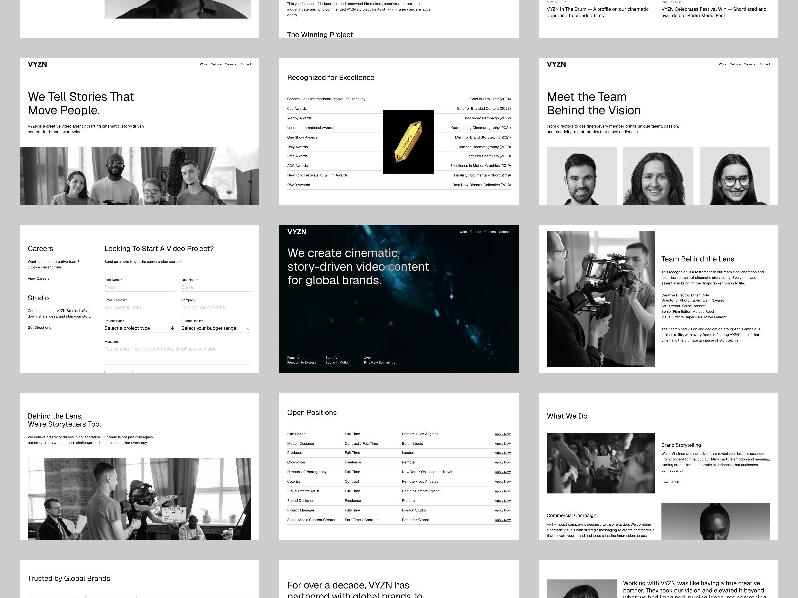 VYZN is a cinematic Framer template for video production agencies and filmmakers, showcasing work with bold visuals and smooth animations.
